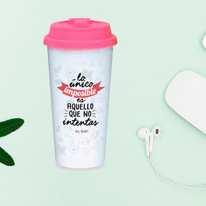 Vaso take away largo "Lo único imposible es aquello que no intentas"