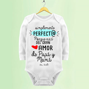 "SIMPLEMENTE PERFECTO PORQUE NACÍ DEL AMOR DE PAPÁ Y MAMÁ " Body bebe