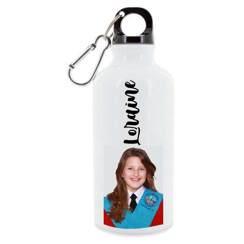 Botella fabricada en aluminio de 500 ml de capacidad y tapón de rosca, con acabado especial para marcajes en sublimación. Incluye mosquetón y llavero. No usar para bebidas carbonatadas o que sean ácidas.