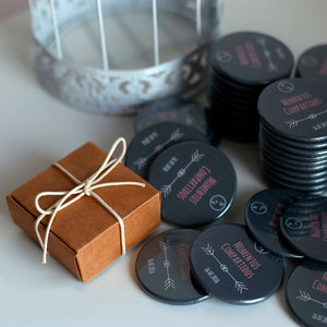Chapas, imanes, espejos y abrebotellas personalizados para eventos sociales
