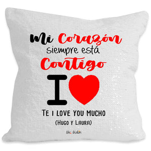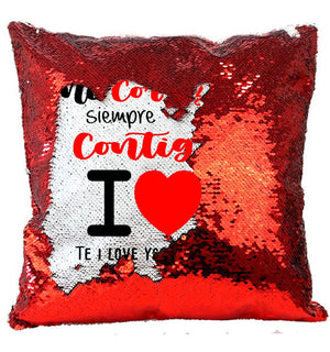 Cojín + relleno lentejuelas 2 colores "Te I love you"