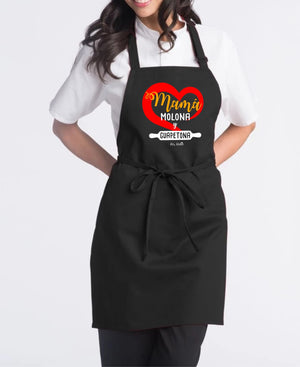 Delantal con peto. 65% poliéster y 35% algodón en tejido sarga 200 grs. Peto superior con tira, 1 bolsillo y tiras para anudar.