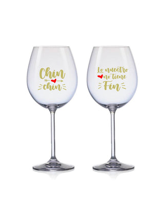 Dúo de copas de vino parejitas "Chin chin lo nuestro no tiene fin"