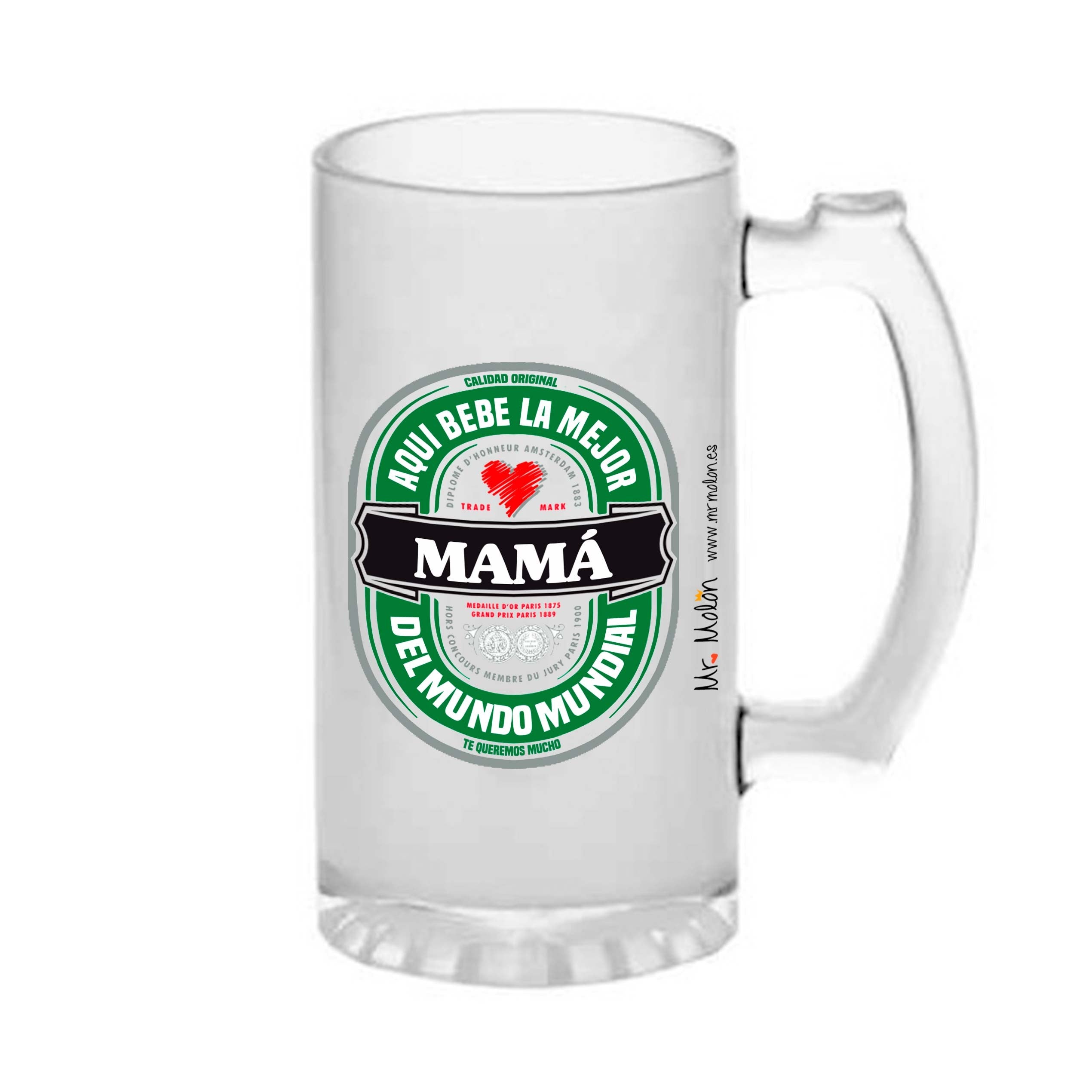 Jarra cerveza "Aquí bebe la mejor Mamá del mundo mundial"