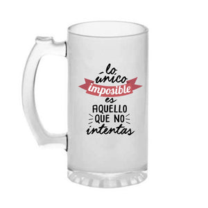 Jarra cerveza "Lo único imposible es aquello que no intentas"