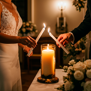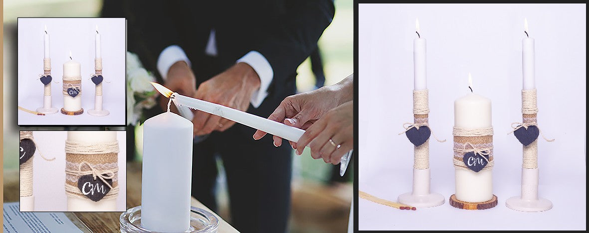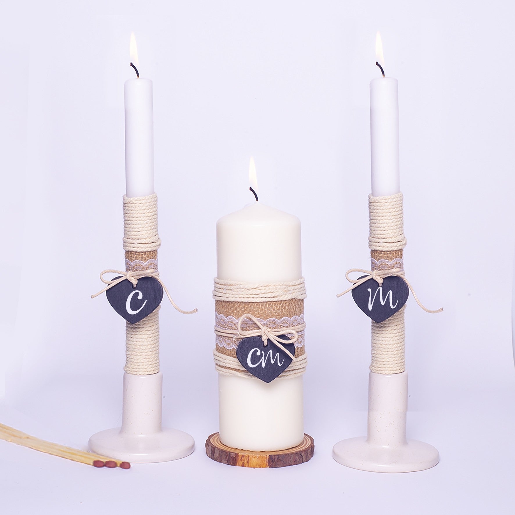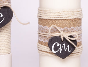 - 2 velas largas decoradas y personalizadas con mucho mimo.