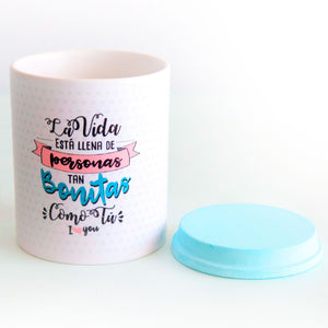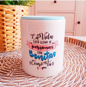 Vaso de cerámica con tapa de resina hecha totalmente a mano