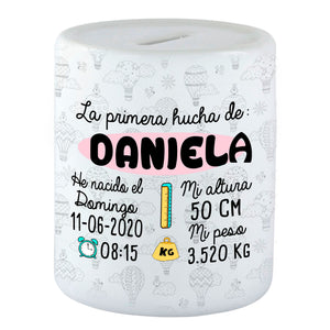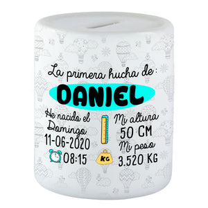 Nuestra hucha personalizada de cerámica es el regalo perfecto para celebrar el nacimiento del bebé, esta hucha es resistente y duradera. Además, su tamaño compacto la hace ideal para cualquier habitación infantil. ¡Fomenta el ahorro desde pequeño con nuestra hucha personalizada!