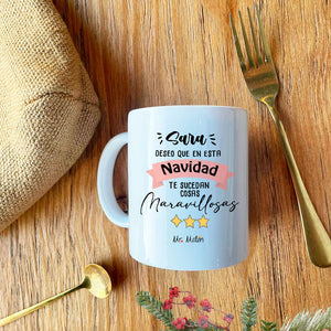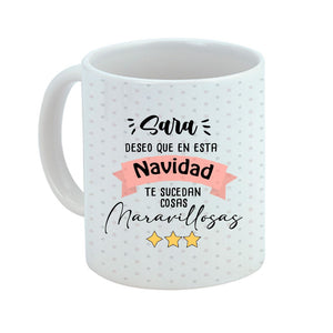 Taza navidad con nombre "cosas maravillosas"