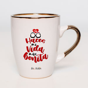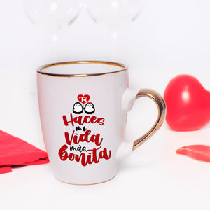 Taza amor con asa dorada "Haces mi vida más bonita"