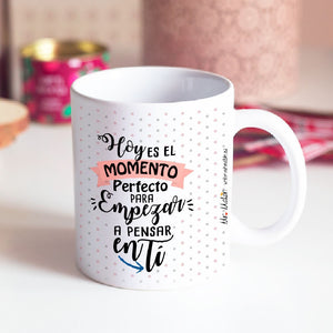 Taza positiva "HOY ES EL MOMENTO PERFECTO PARA PENSAR EN TÍ"