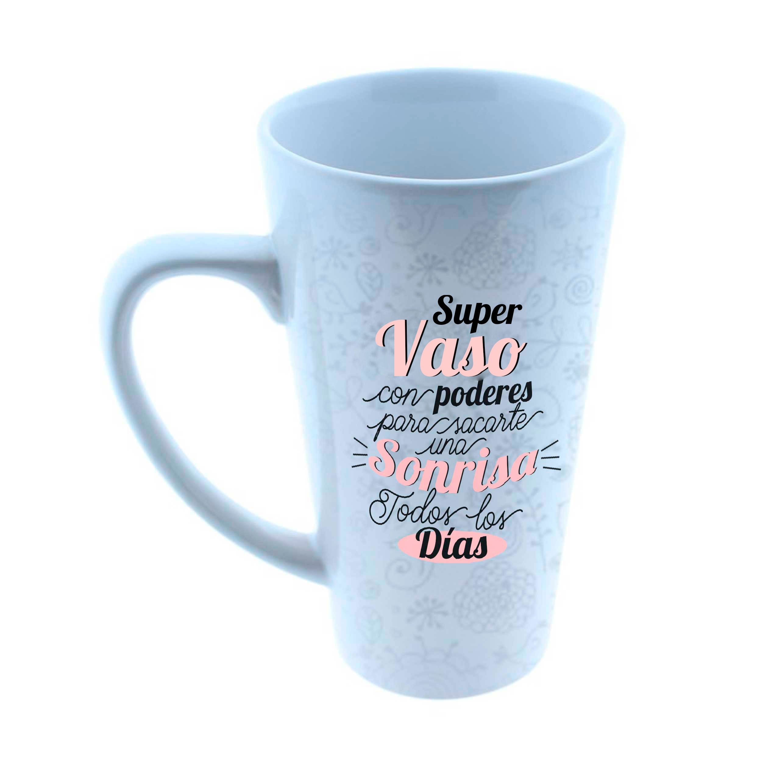 Vaso largo cerámica "Súper vaso con poderes para sacarte una sonrisa"