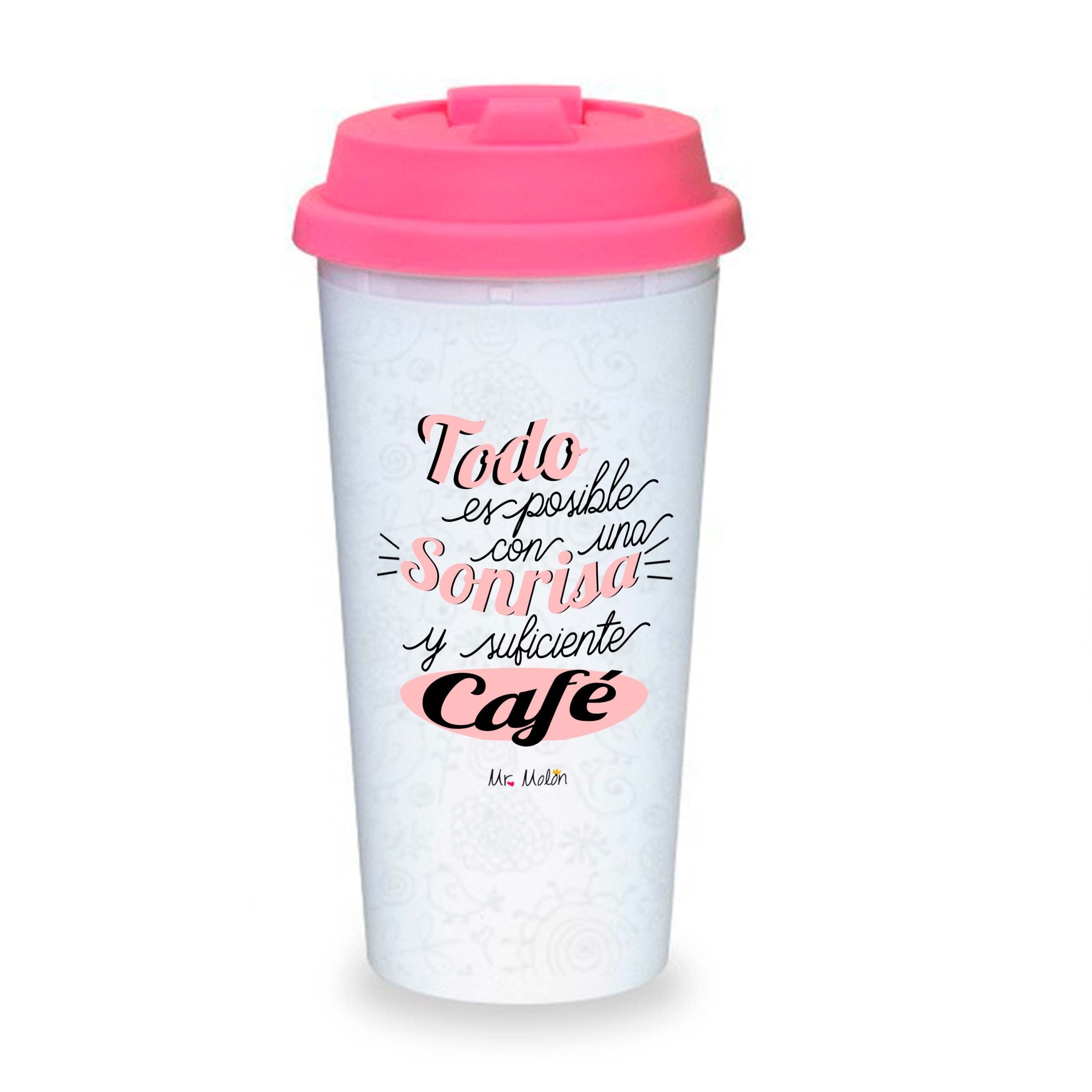 "Todo es posible con una sonrisa y suficiente café - Vaso take away